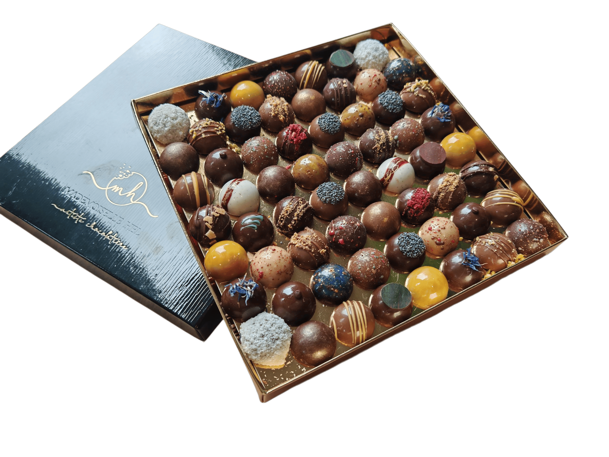 Élégant coffret composé de 62 chocolats assortis, pour un maximum de gourmandise !